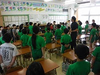 ■8日(月)、4年生の朝の会を3年2組が見学していました。